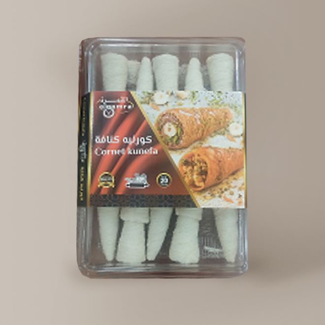 Le Cornet Künefa est une interprétation moderne et raffinée de la célèbre künefa, revisité sous forme de cornet croustillant. Chaque pièce est façonnée à la main à partir de pâte kunefa. Il sert de base à de nombreux desserts sucrés et peut également être utilisée pour des recettes salées